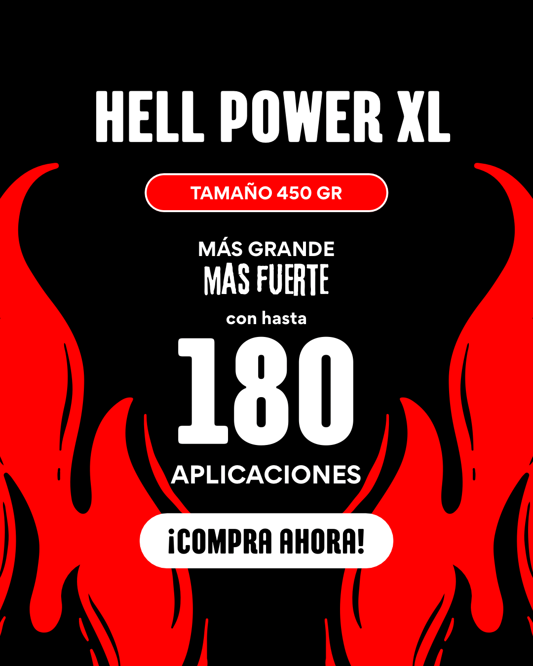 Te presentamos Hell Power XL, nuestra nueva presentación con 450 gramos para que nunca te falte el poder del fuego en tus entrenamientos y en tu recuperación.